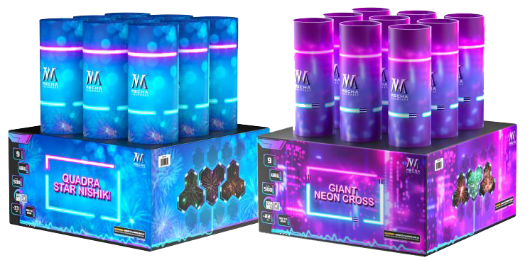 Extraordinary roman candle finale cake double layers of chrysanthemum w/color pearls; then flower crown w/green/blue/red strobe for double layers; then 3 shots of flower crown & chrys. for a finale, a real show stealer!