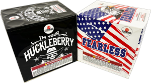 Nice for parties with a blue color theme, this boyish cake is loaded with white strobe mines rising up to blue and white strobe aerial bombards.