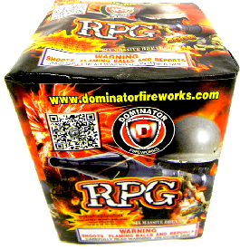 R.P.G. Item#:MT862Packed:24/1Size:4.75"x3.75"6 Shots of red tail to red dahlia green strobe, red tail to big chrysanthemum, red tail to red & blue stars.