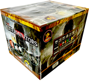 This is one awesome 200gram item, with silver, red, green, and gold glitter, red "clubs", and crackling stars. 49 exciting shots.