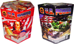 Red:Maximum 6 break w/titanium willow,color strobes; palms & big crackling flower.