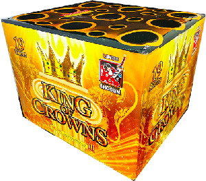 King Of Crowns Item#:MT205Packed: 4 PiecesSize:8.66"x11"x8.66"(H)Nine Massive bursts of silver spinning crowns with decadent green, gold, and red stroking centers punctuated by bursts of neon green and blue go getter bouquets. All hail the king!