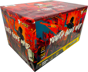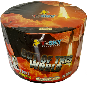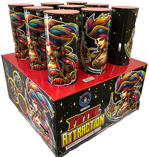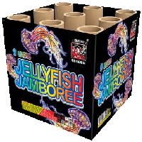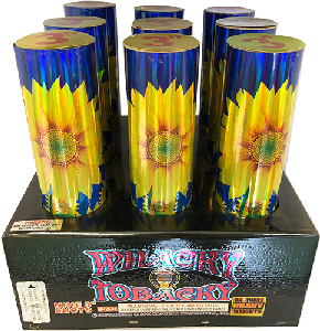 9 Big Shots of half-red and half blue w/green glitter-pistil, half orange and half green w/white glitter pistil, half purple and half lemon with chrysanthemum pistil, OUTTASIGHT!