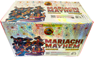Performance: Feel the rhythm of Mariachi Mayhem as brocade comet tails rapidly dance along both sides, while vibrant purple stars shoot at center stage. This fiery performance brings the sprit of celebration to the sky with bold colors and bold moves, with a wild volley of brocade tails and crackling sparks-like the grand finale of a fiesta!