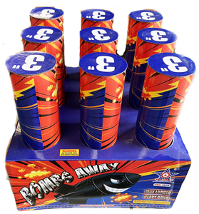 Bombs Away Item#: MT245Packed: 2 per caseSize: 14.4"x14.4"x14.2"Big Bombs with purple and gold wave, pink peony with pistil.