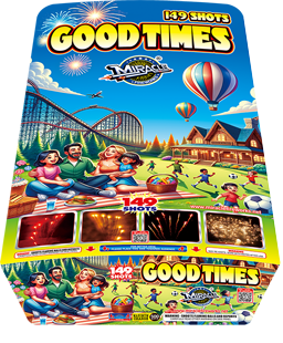 Good Times Item#:MT232Packed:2 per caseSize:15.1"x26"x5"Great medium size finale Z cake with multiple comet tails. Red/blue/yellow dahlia/silver palm/gold/white/red/strobe/whistling/crackling willow tail up to chrs. Awesome!