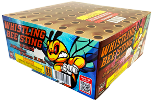 Performance: Whistling Bee Sting zips into action with a unique combo of color and sound! Rows of blue mines launch red, blue, and silver go-getters, followed by sharp silver whistles and buzzing red and green hummers. It’s fast, fun, and full of bite.